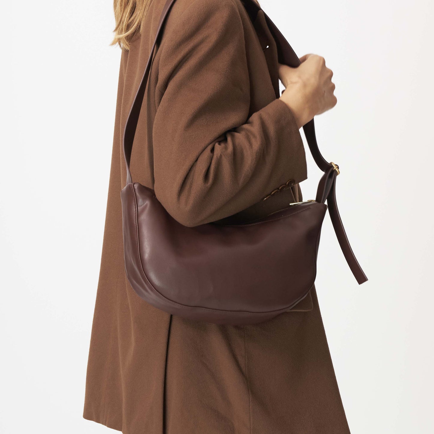 Diese kleine Tasche wird aus der veganen Lederalternative Oleatex hergestellt und besticht durch ihre hochwertige Verarbeitung und den modernen Look. Oleatex entsteht aus den Resten der Olivenindustrie und bietet optisch wie auch qualitativ alle Merkmale, die Leder aus tierischen Bestandteilen aufweist. Die Half Moon Bag S kann crossbody oder über der Schulter getragen werden. Diese Handtasche ist auch in einer größeren Version als Half Moon Bag erhältlich.