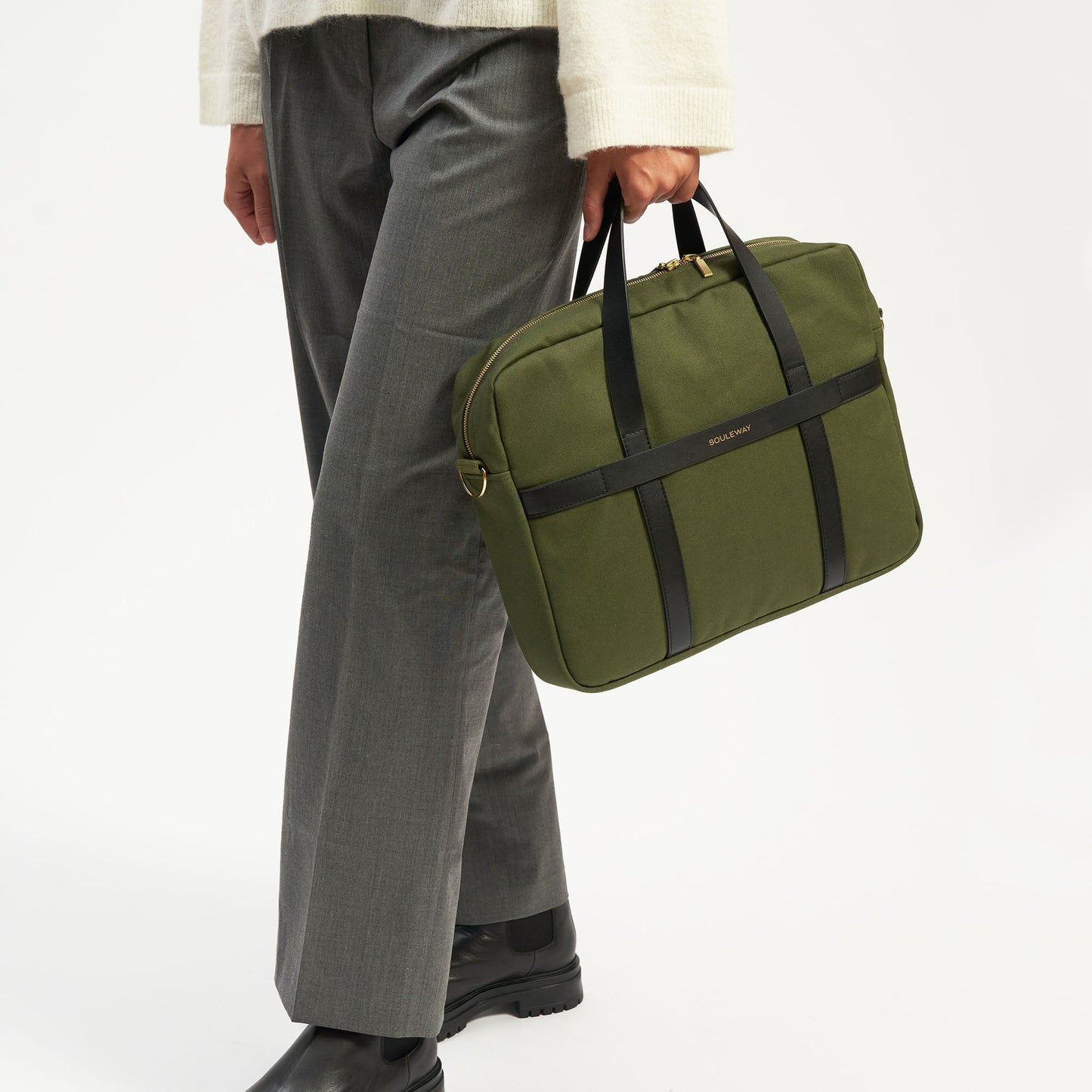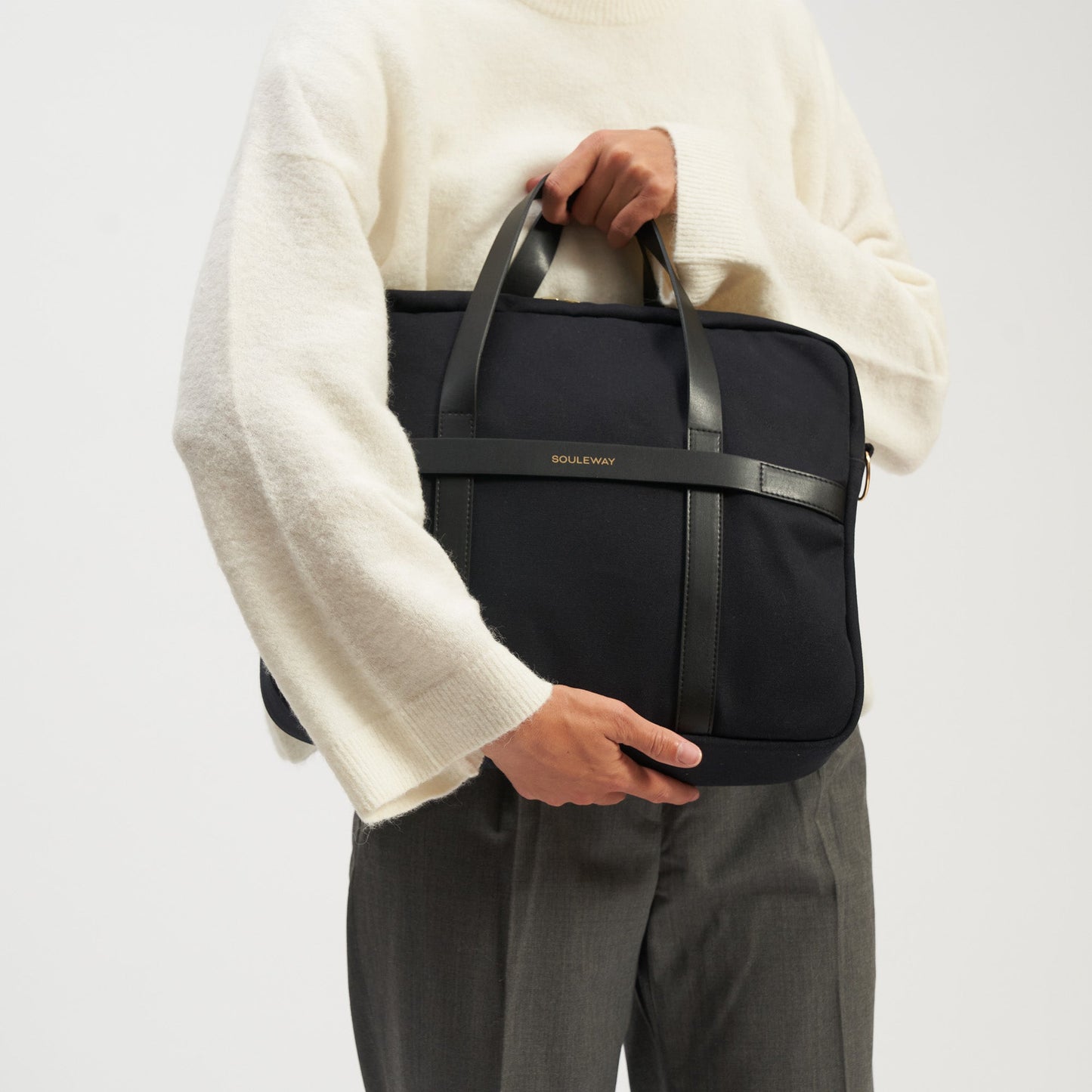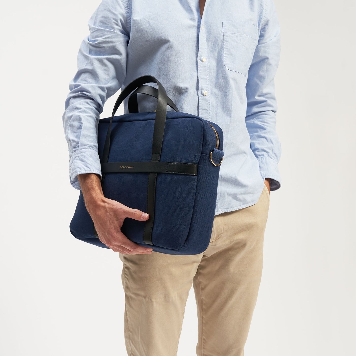 Die Laptop Bag wird aus wasserabweisendem Canvas-Stoff und der veganen Lederalternative Oleatex hergestellt. Sie besticht durch klare Linien und eine hochwertige Verarbeitung. In der Laptop-Tasche ist Platz für bis zu zwei 16-Zoll-Laptops sowie weitere Dinge, die du für den Arbeits- oder Unialltag benötigst. Die Tasche kann in der Hand oder mithilfe des abnehmbaren Baumwollgurtes über der Schulter getragen werden.